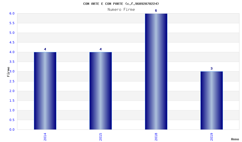 | Anno | Firme | Importi | Media | Naz. | Reg. | Prov. | Comu. |