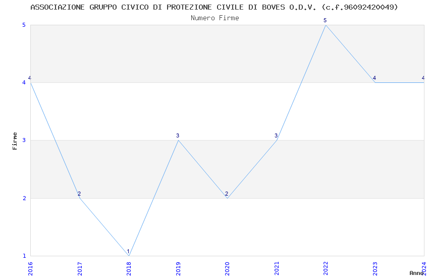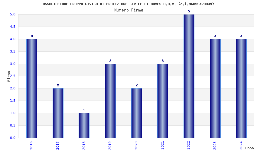 | Anno | Firme | Importi | Media | Naz. | Reg. | Prov. | Comu. |