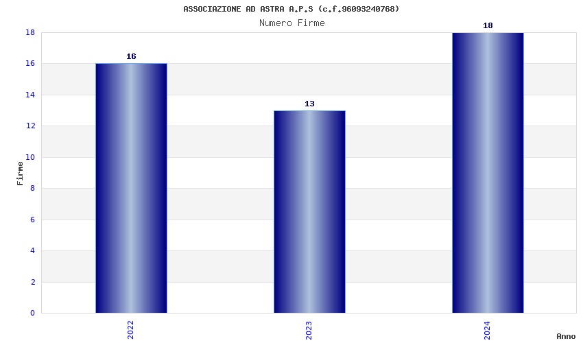 | Anno | Firme | Importi | Media | Naz. | Reg. | Prov. | Comu. |