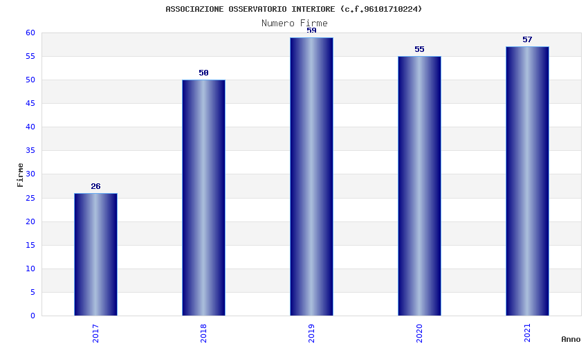 | Anno | Firme | Importi | Media | Naz. | Reg. | Prov. | Comu. |