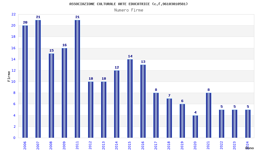 | Anno | Firme | Importi | Media | Naz. | Reg. | Prov. | Comu. |