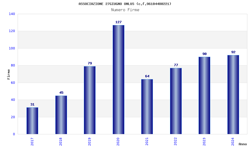 | Anno | Firme | Importi | Media | Naz. | Reg. | Prov. | Comu. |