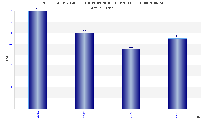 | Anno | Firme | Importi | Media | Naz. | Reg. | Prov. | Comu. |
