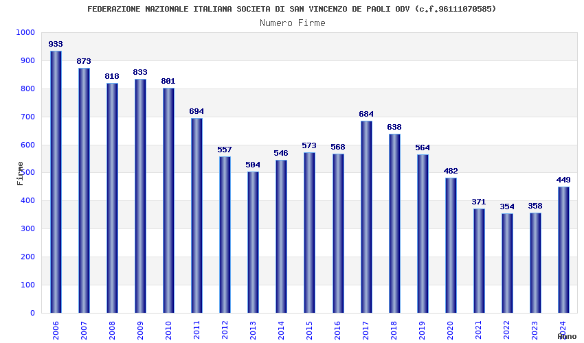 | Anno | Firme | Importi | Media | Naz. | Reg. | Prov. | Comu. |