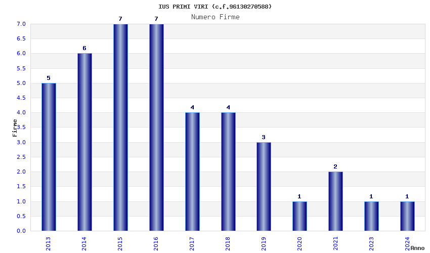 | Anno | Firme | Importi | Media | Naz. | Reg. | Prov. | Comu. |