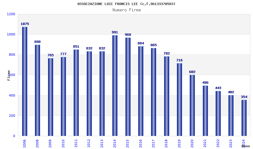 | Anno | Firme | Importi | Media | Naz. | Reg. | Prov. | Comu. |