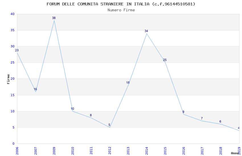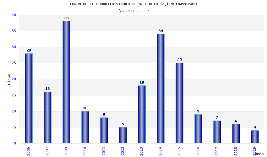 | Anno | Firme | Importi | Media | Naz. | Reg. | Prov. | Comu. |