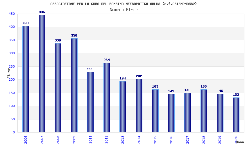 | Anno | Firme | Importi | Media | Naz. | Reg. | Prov. | Comu. |