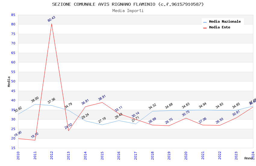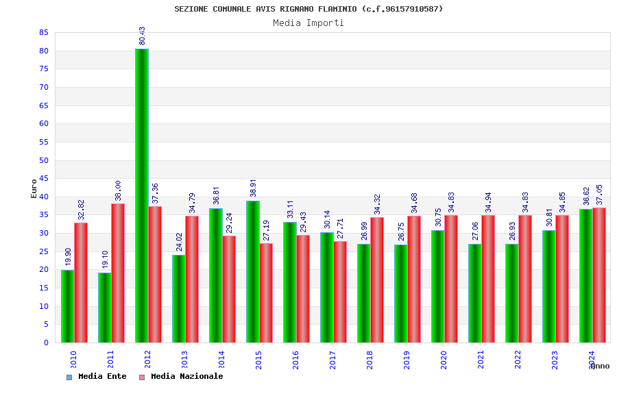 | Anno | Firme | Importi | Media | Naz. | Reg. | Prov. | Comu. |