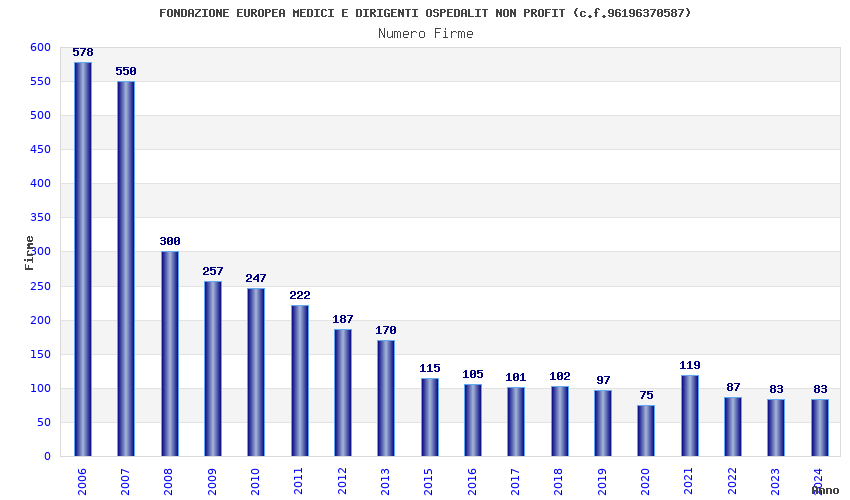 Anno Firme Importi Media Naz. Reg. Prov. Comu.