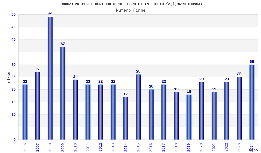 | Anno | Firme | Importi | Media | Naz. | Reg. | Prov. | Comu. |