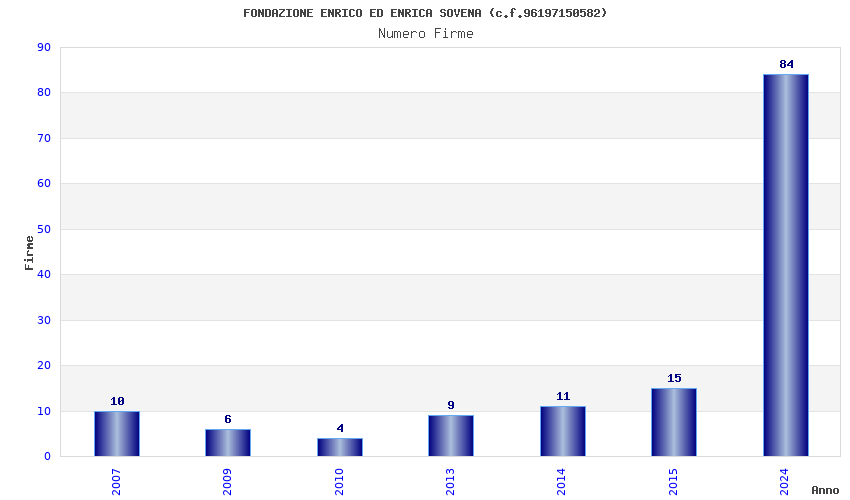 | Anno | Firme | Importi | Media | Naz. | Reg. | Prov. | Comu. |