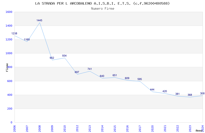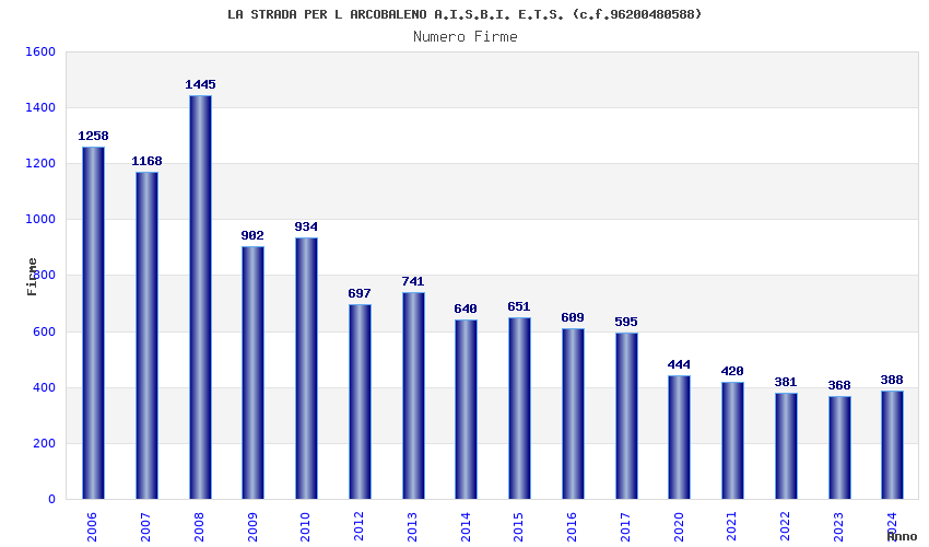 | Anno | Firme | Importi | Media | Naz. | Reg. | Prov. | Comu. |
