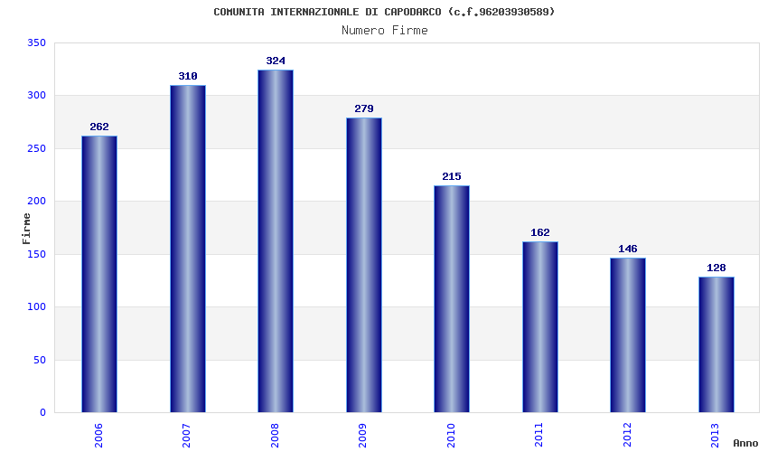 | Anno | Firme | Importi | Media | Naz. | Reg. | Prov. | Comu. |