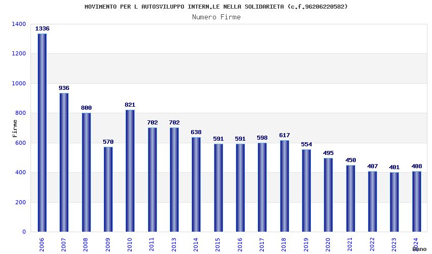 | Anno | Firme | Importi | Media | Naz. | Reg. | Prov. | Comu. |