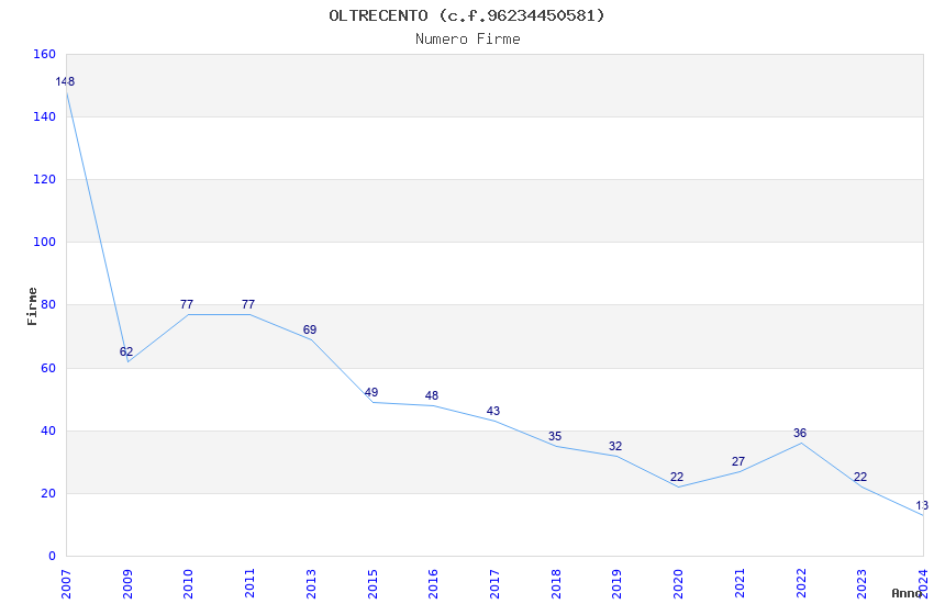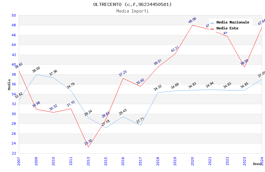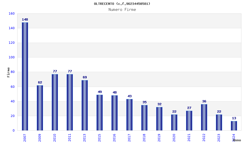 | Anno | Firme | Importi | Media | Naz. | Reg. | Prov. | Comu. |
