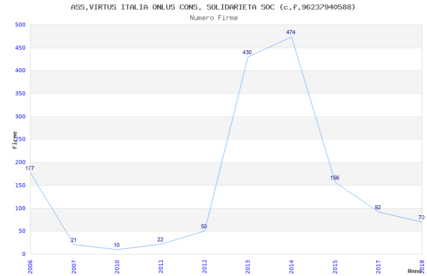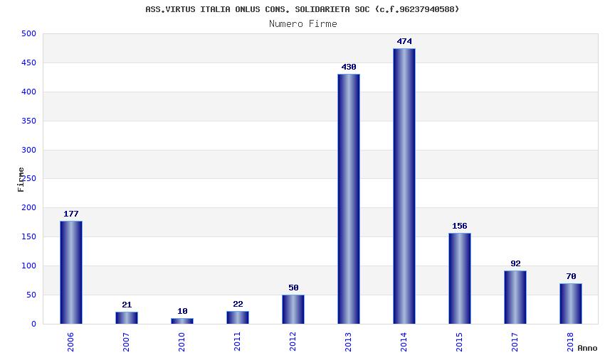 | Anno | Firme | Importi | Media | Naz. | Reg. | Prov. | Comu. |