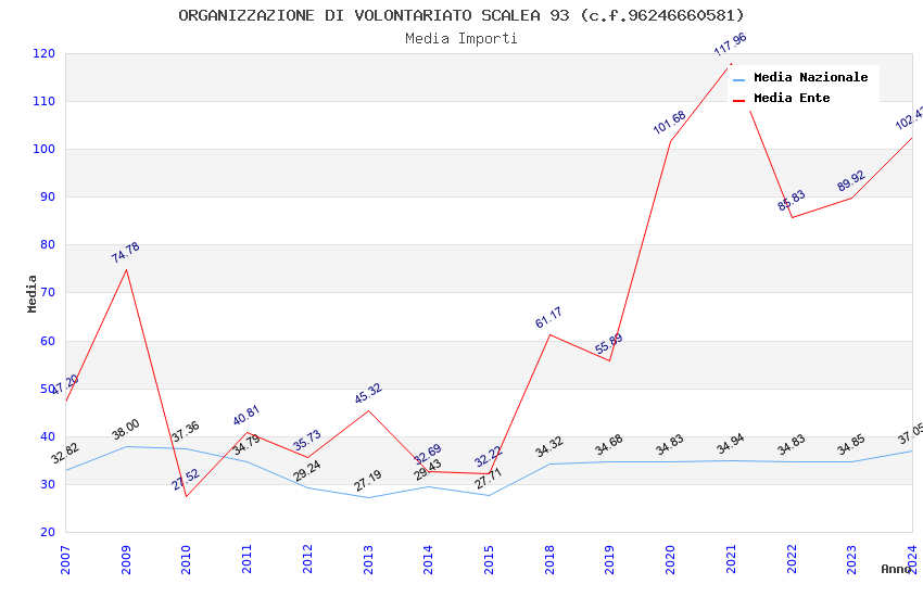 | Anno | Firme | Importi | Media | Naz. | Reg. | Prov. | Comu. |