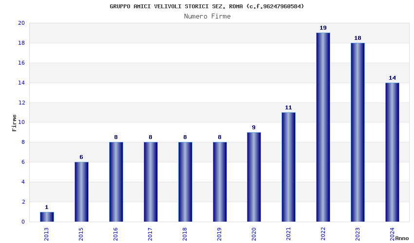 | Anno | Firme | Importi | Media | Naz. | Reg. | Prov. | Comu. |