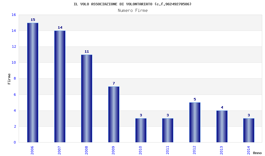 | Anno | Firme | Importi | Media | Naz. | Reg. | Prov. | Comu. |