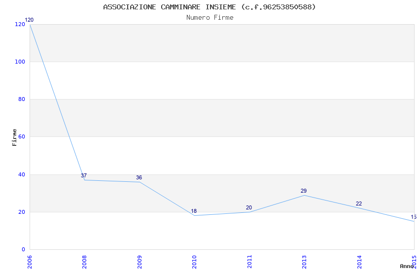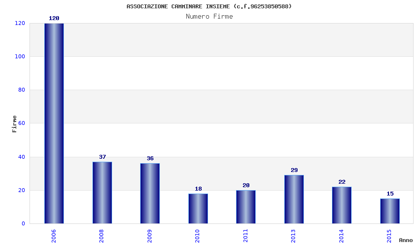 | Anno | Firme | Importi | Media | Naz. | Reg. | Prov. | Comu. |
