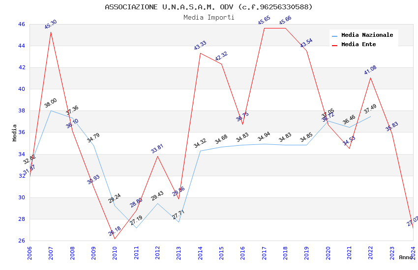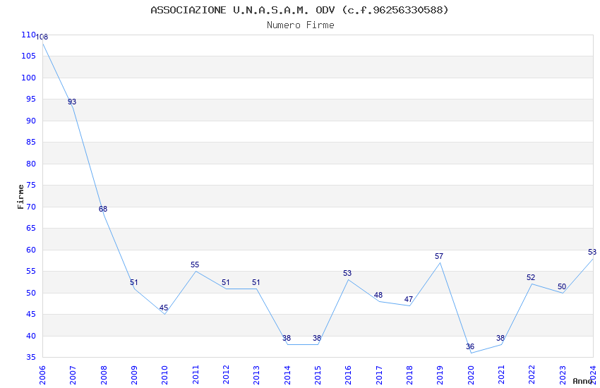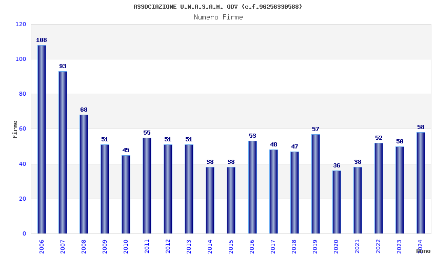 | Anno | Firme | Importi | Media | Naz. | Reg. | Prov. | Comu. |