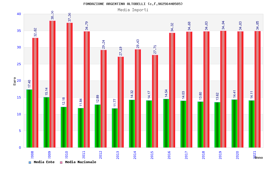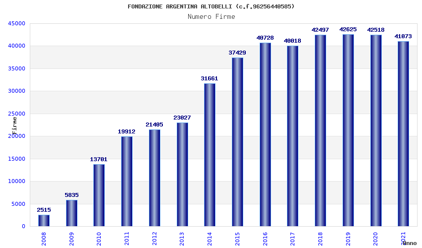 | Anno | Firme | Importi | Media | Naz. | Reg. | Prov. | Comu. |