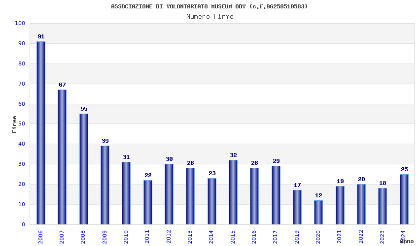 | Anno | Firme | Importi | Media | Naz. | Reg. | Prov. | Comu. |
