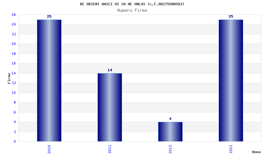 | Anno | Firme | Importi | Media | Naz. | Reg. | Prov. | Comu. |