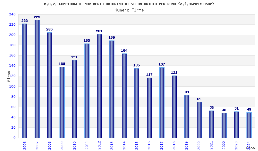 | Anno | Firme | Importi | Media | Naz. | Reg. | Prov. | Comu. |