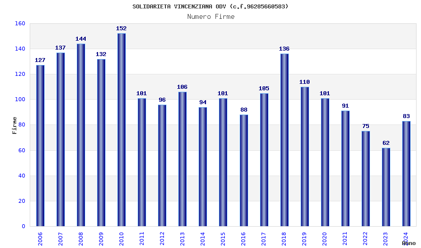 Anno Firme Importi Media Naz. Reg. Prov. Comu.