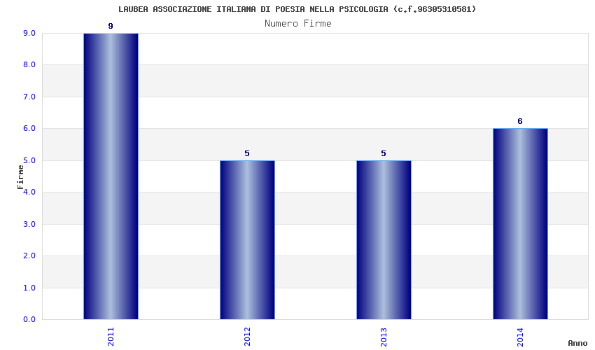 | Anno | Firme | Importi | Media | Naz. | Reg. | Prov. | Comu. |