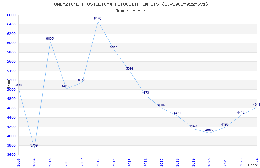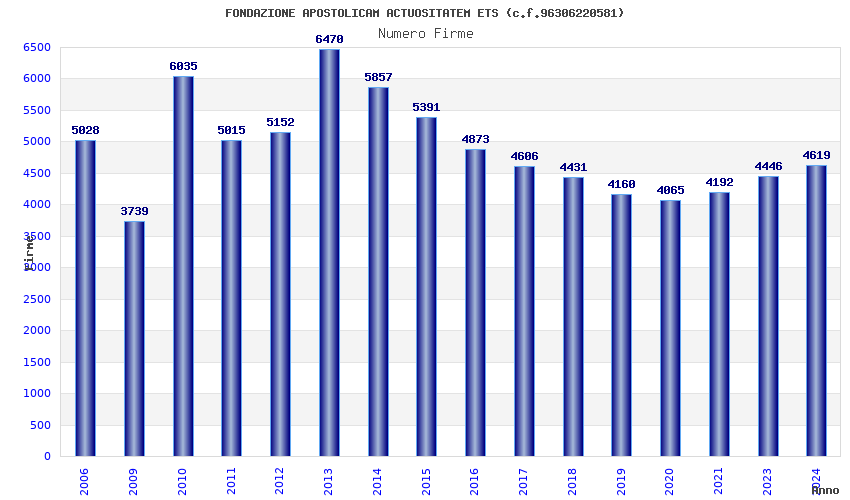 | Anno | Firme | Importi | Media | Naz. | Reg. | Prov. | Comu. |
