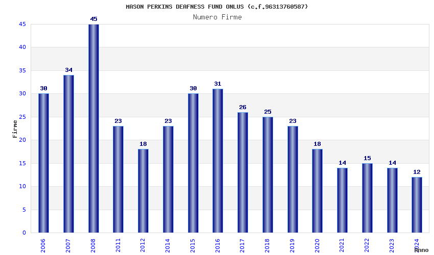| Anno | Firme | Importi | Media | Naz. | Reg. | Prov. | Comu. |