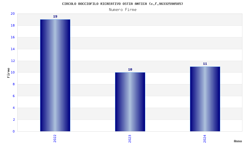 | Anno | Firme | Importi | Media | Naz. | Reg. | Prov. | Comu. |
