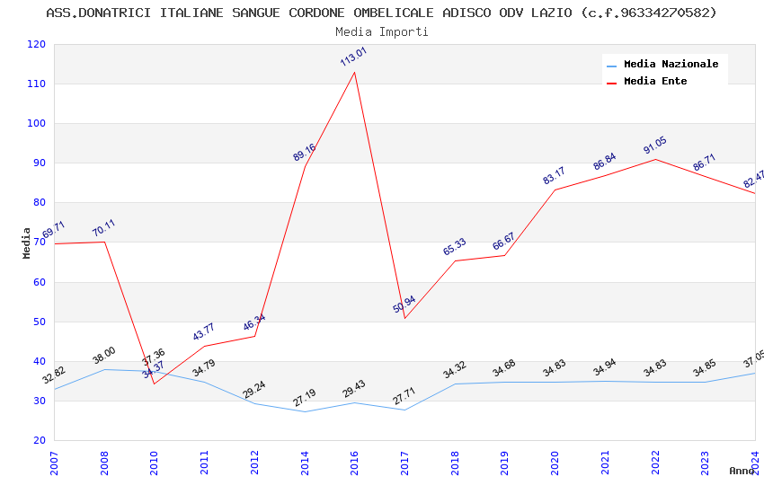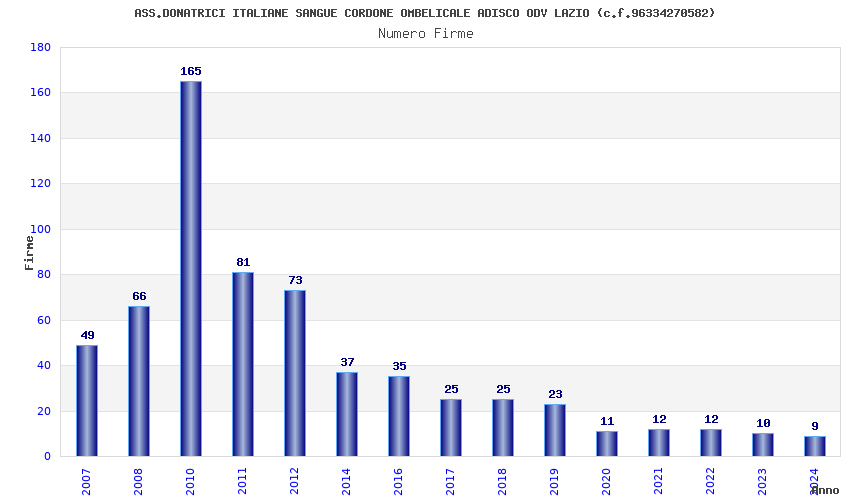 | Anno | Firme | Importi | Media | Naz. | Reg. | Prov. | Comu. |
