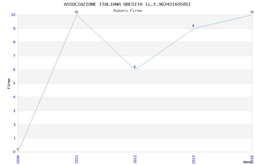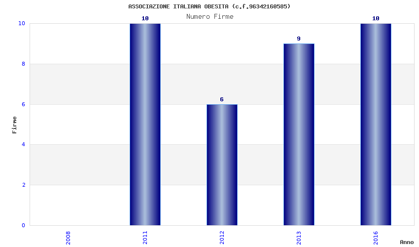 | Anno | Firme | Importi | Media | Naz. | Reg. | Prov. | Comu. |
