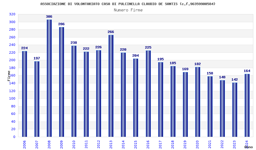 | Anno | Firme | Importi | Media | Naz. | Reg. | Prov. | Comu. |