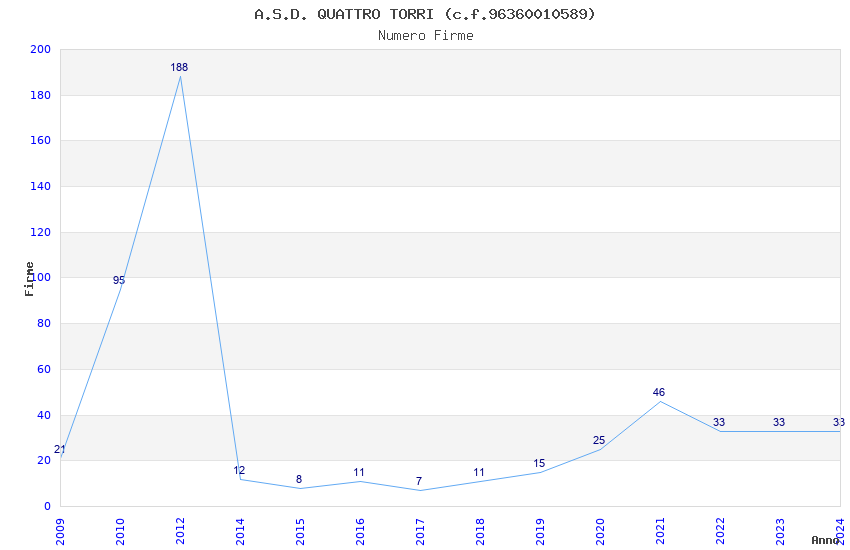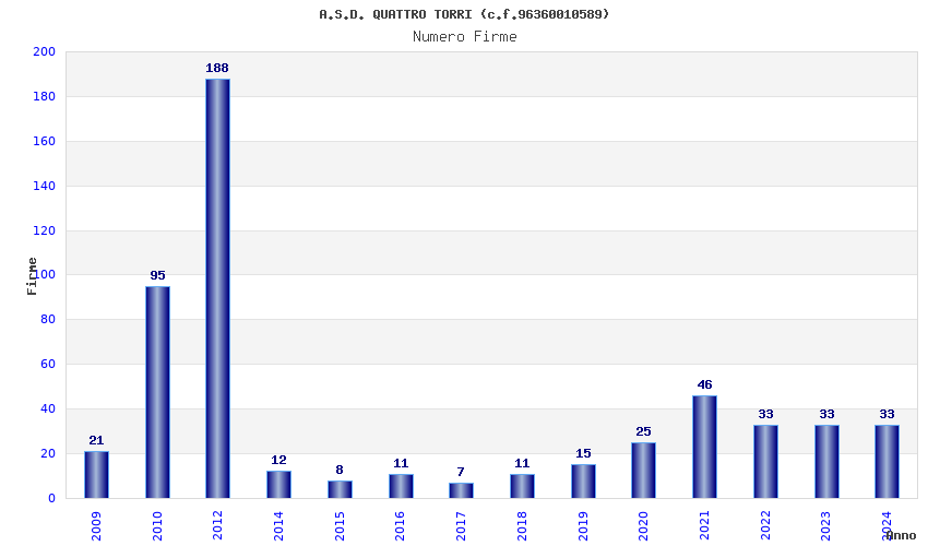| Anno | Firme | Importi | Media | Naz. | Reg. | Prov. | Comu. |