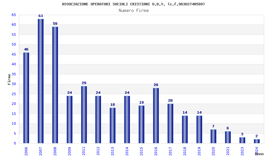 | Anno | Firme | Importi | Media | Naz. | Reg. | Prov. | Comu. |