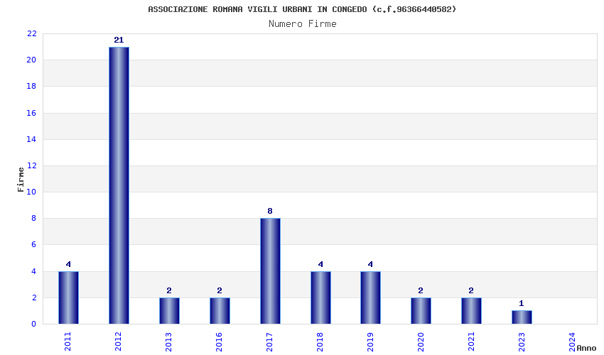 | Anno | Firme | Importi | Media | Naz. | Reg. | Prov. | Comu. |