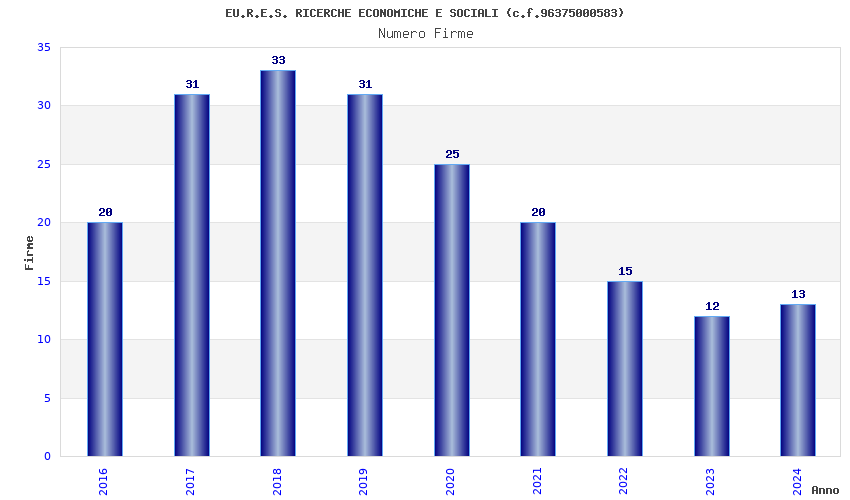 | Anno | Firme | Importi | Media | Naz. | Reg. | Prov. | Comu. |