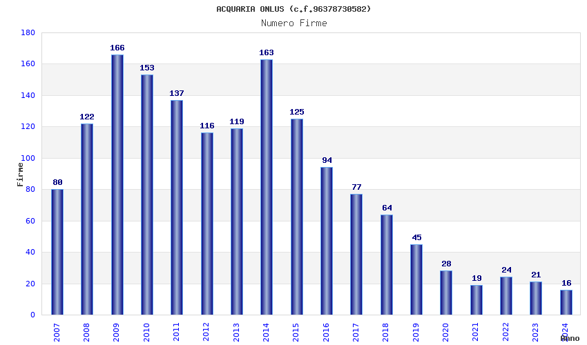 | Anno | Firme | Importi | Media | Naz. | Reg. | Prov. | Comu. |
