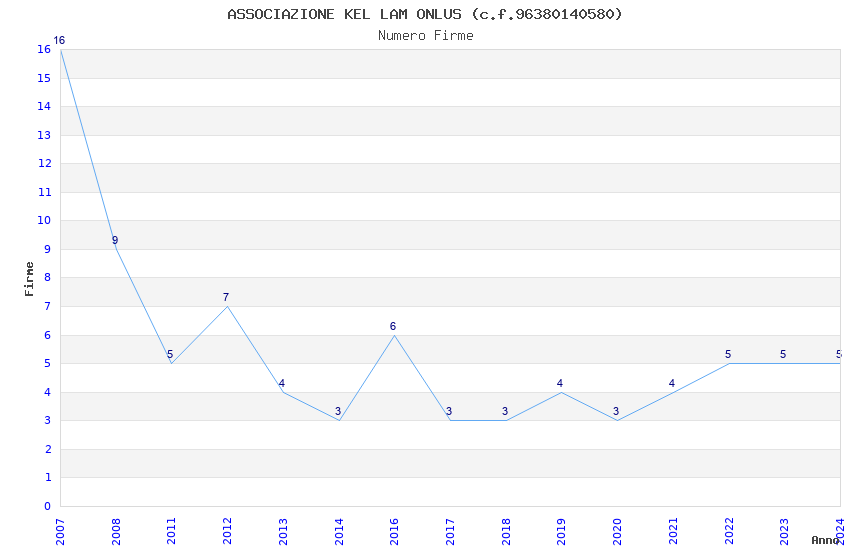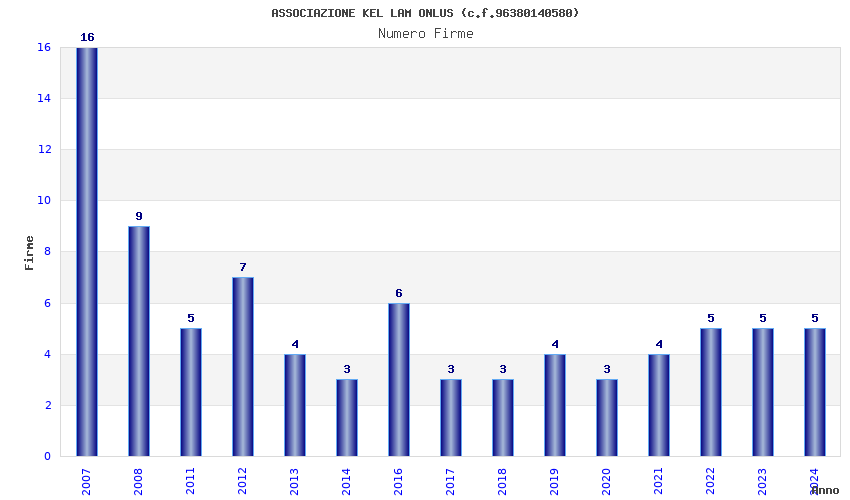 | Anno | Firme | Importi | Media | Naz. | Reg. | Prov. | Comu. |