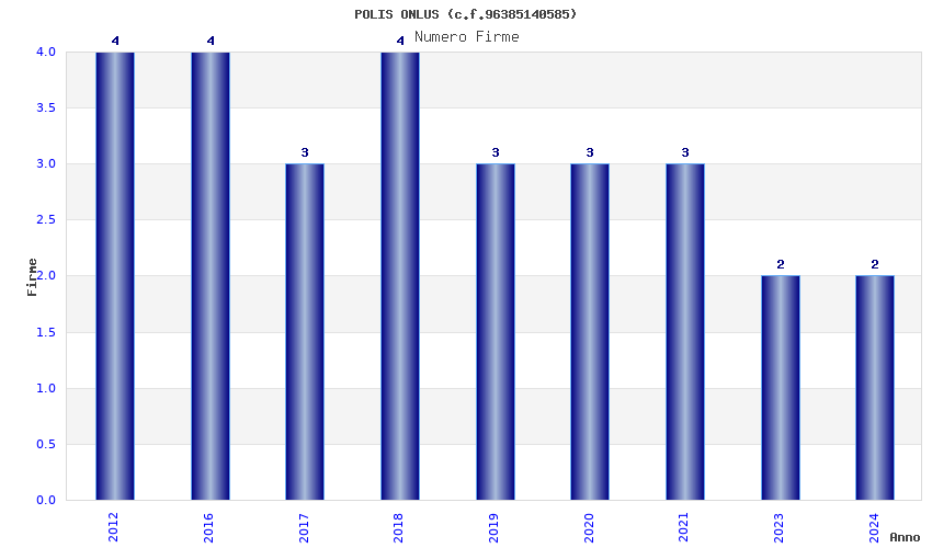 | Anno | Firme | Importi | Media | Naz. | Reg. | Prov. | Comu. |