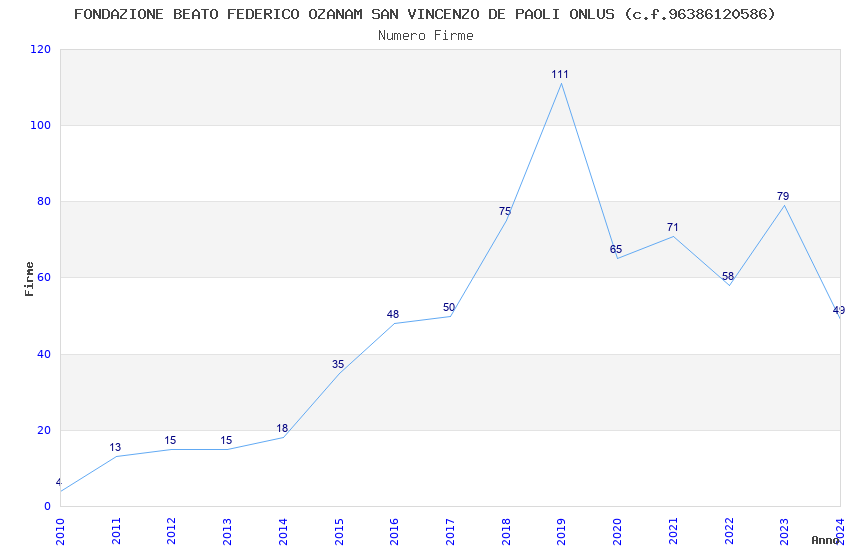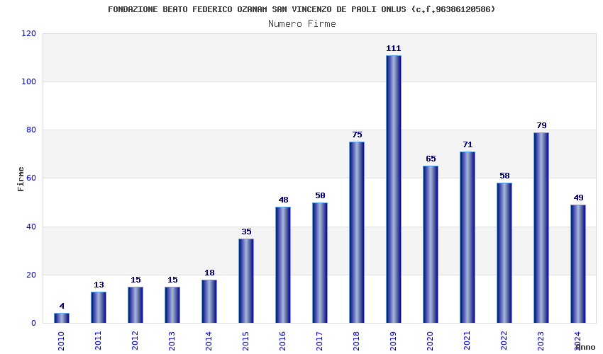 | Anno | Firme | Importi | Media | Naz. | Reg. | Prov. | Comu. |