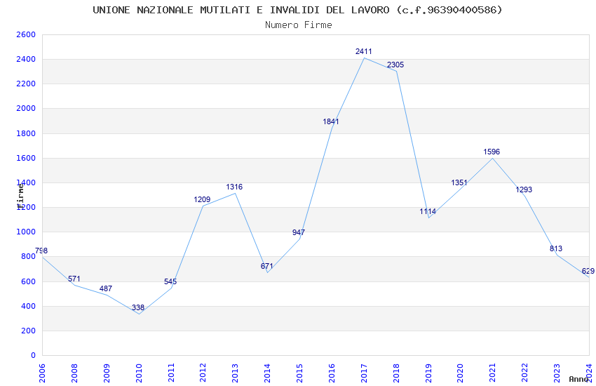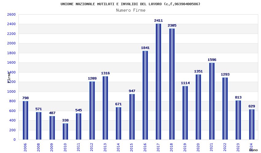 | Anno | Firme | Importi | Media | Naz. | Reg. | Prov. | Comu. |