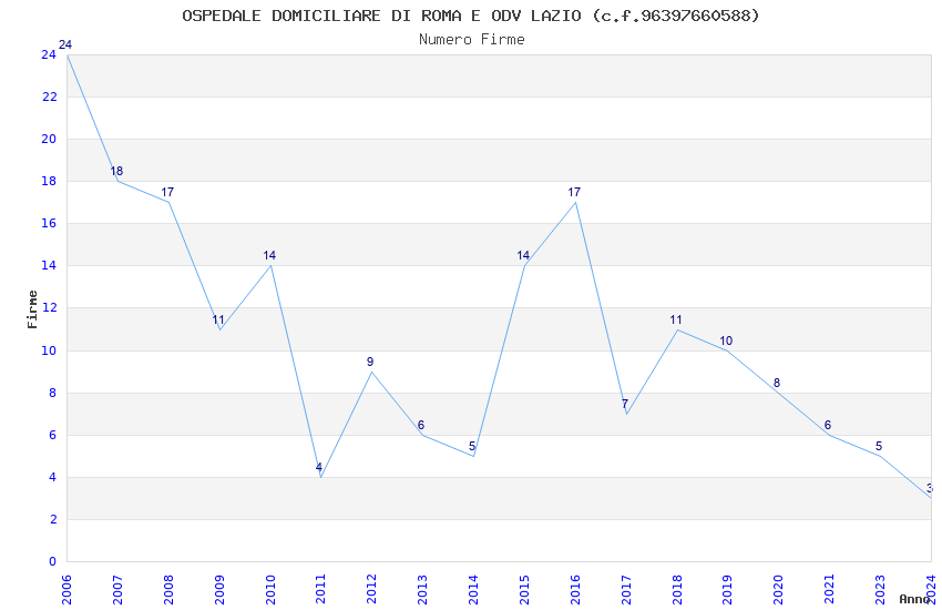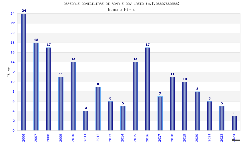 | Anno | Firme | Importi | Media | Naz. | Reg. | Prov. | Comu. |