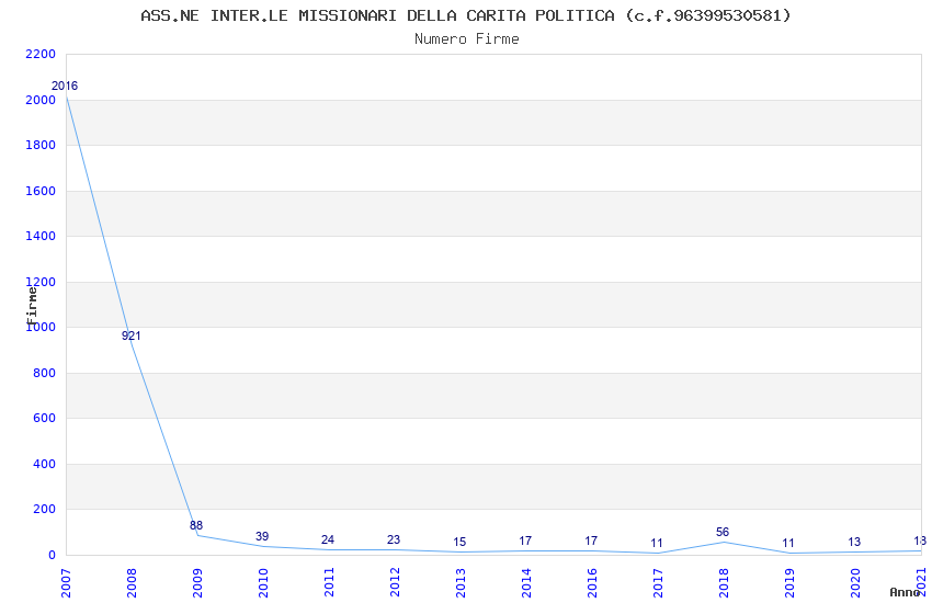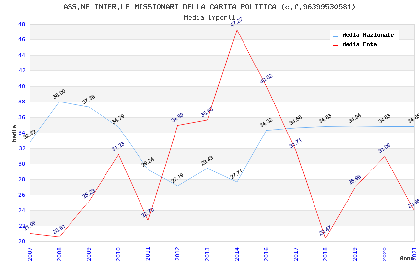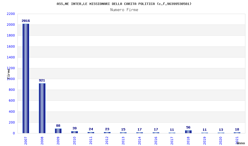 | Anno | Firme | Importi | Media | Naz. | Reg. | Prov. | Comu. |