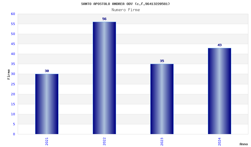 | Anno | Firme | Importi | Media | Naz. | Reg. | Prov. | Comu. |